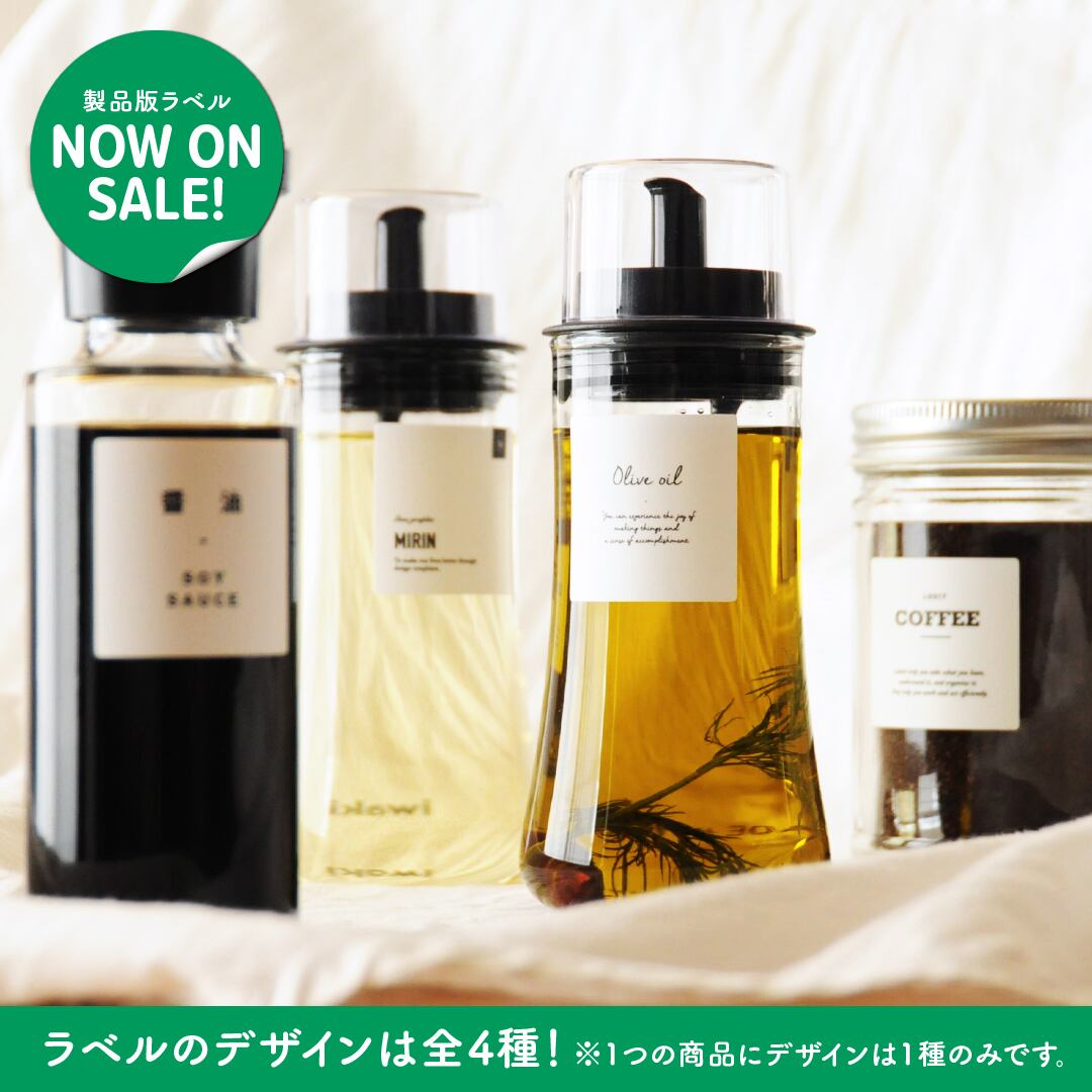 デザイナーとして活動する私たちが、フォントやレイアウトを細部までこだわって「本当に使いたい」と思う調味料ラベルを作りました。デザインのバリエーションは全4種類。インテリアテイストに合わせてお選びいただけます。